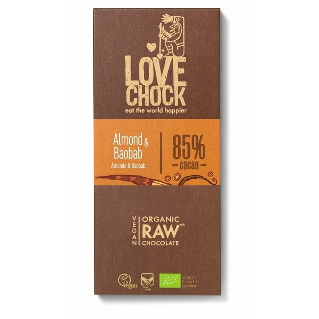 Le Chocolat noir cru de Lovechock est un savoureux mélange de texture et de saveur entre le croquant des éclats dAmandes et le goût frais du Baobab. Il est surtout enrichi en Supers Aliments :