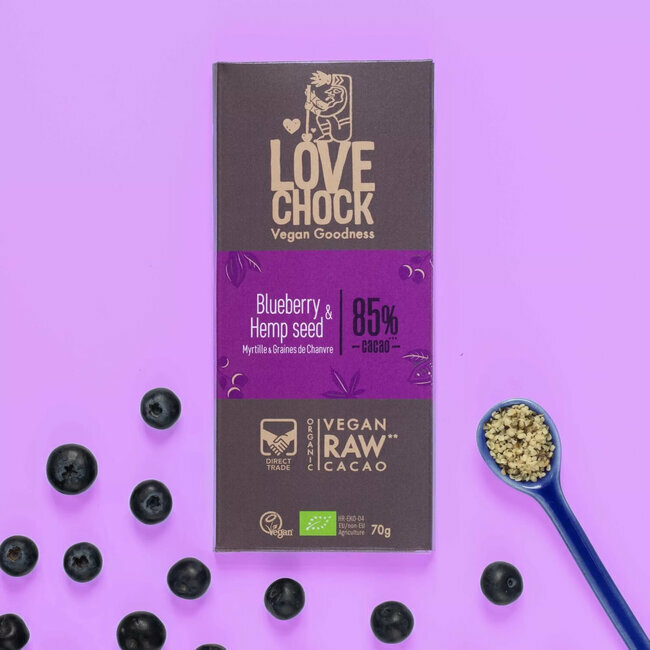 Le Chocolat noir cru de Lovechock allie le goût de noisette des graines de Chanvre à la fraîcheur des Myrtilles. Il est surtout enrichi en Supers Aliments :