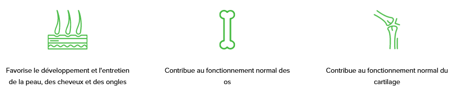 Stimule la production naturelle de collagène dans la peau, les articulations, les cheveux et les ongles.